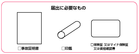 「事故証明書」をもらってください。 - ②整容国保の窓口に届け出る